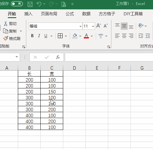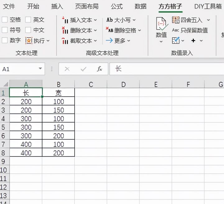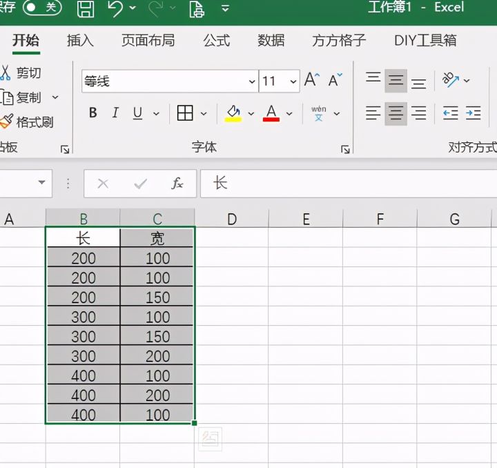 1.如下图是某公司产品尺寸表,表格中含有部分重复数据,现在我们想要将表格中的长和宽均不重复数据提取出来。