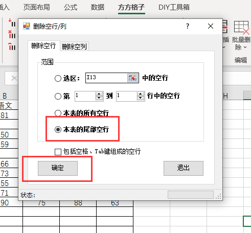 5.勾选【本表的尾部空行】,然后点击【确定】
