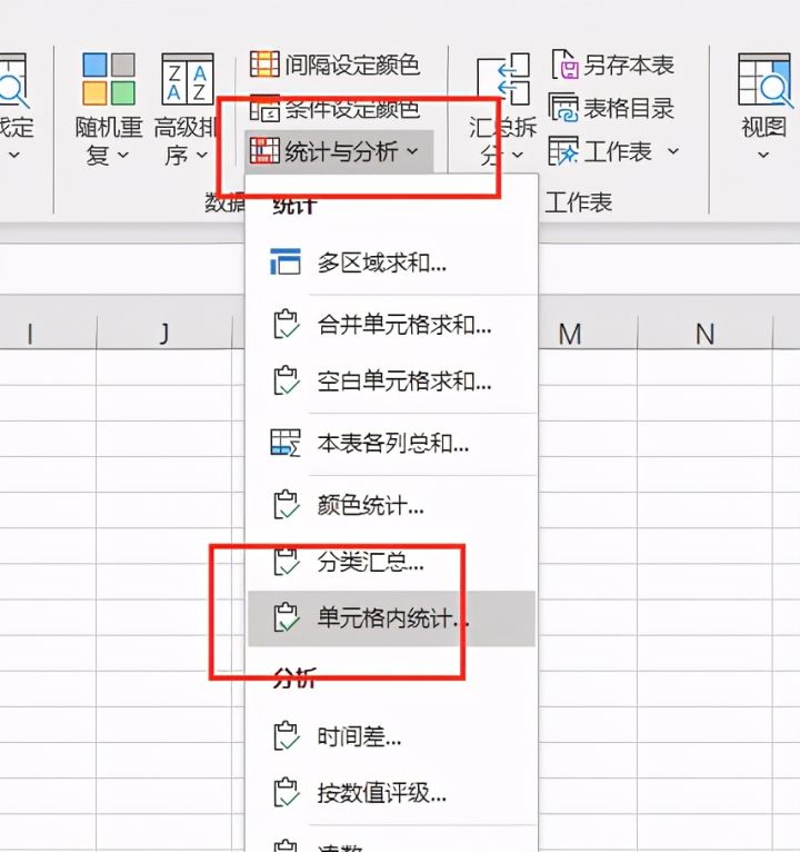 4.点击【统计与分析】,选择【单元格内统计】