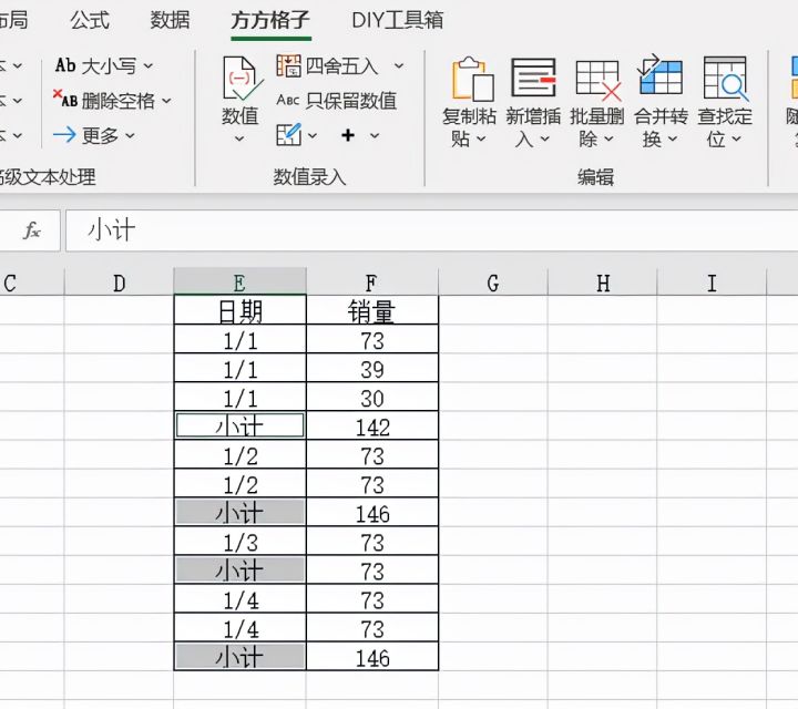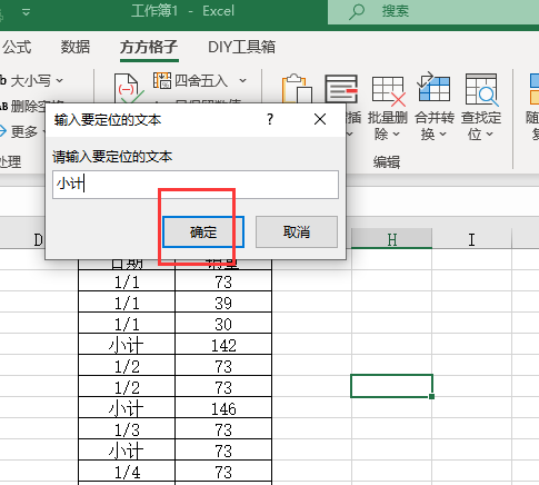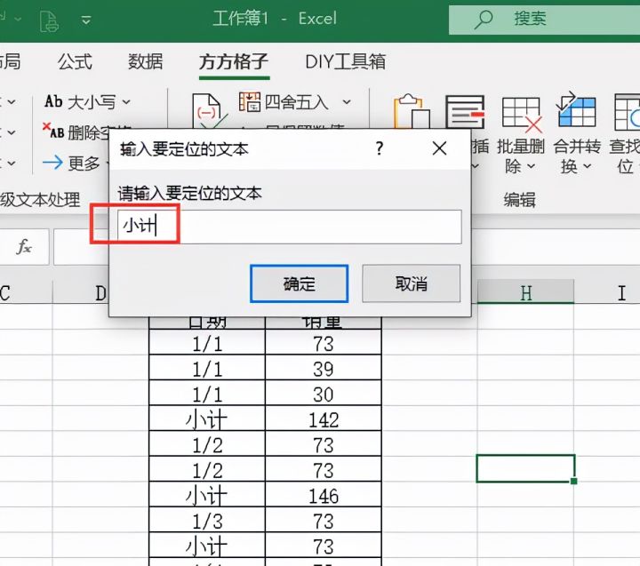 5.在弹出对话框内录入“小计”