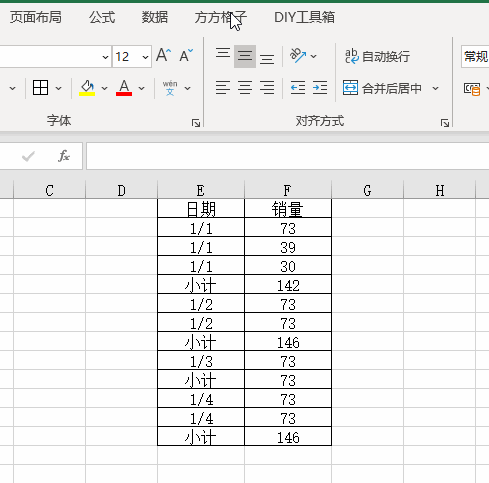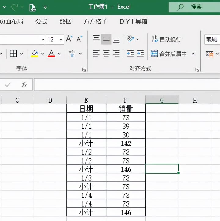 1.打开Excel文件,我们想要快速定位所有小计单元格