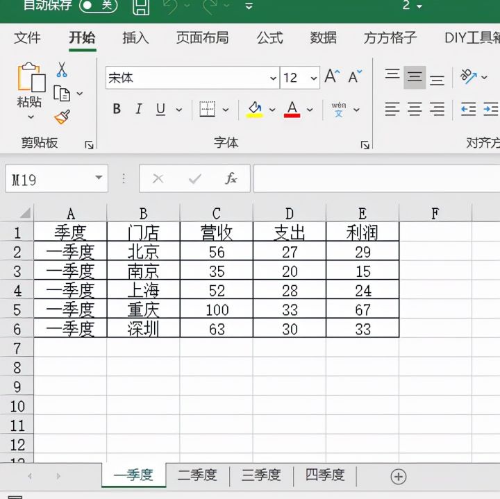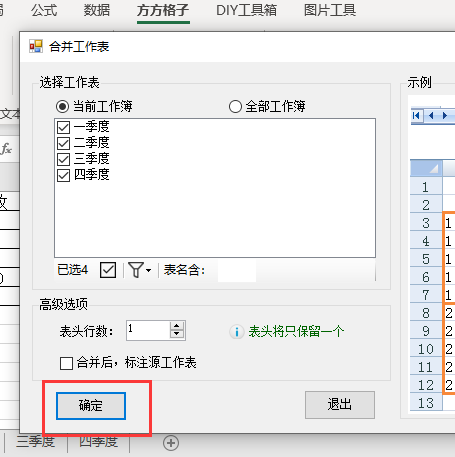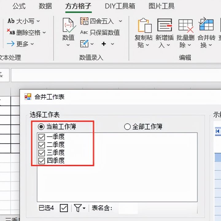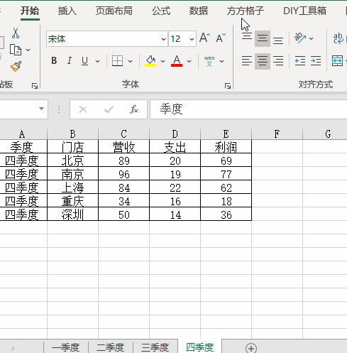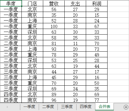 1.打开演示文件,要求将这四个季度报表转换为一个报表显示。