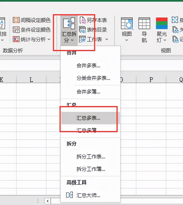 4.点击【汇总拆分】,然后鼠标选择【汇总多表】