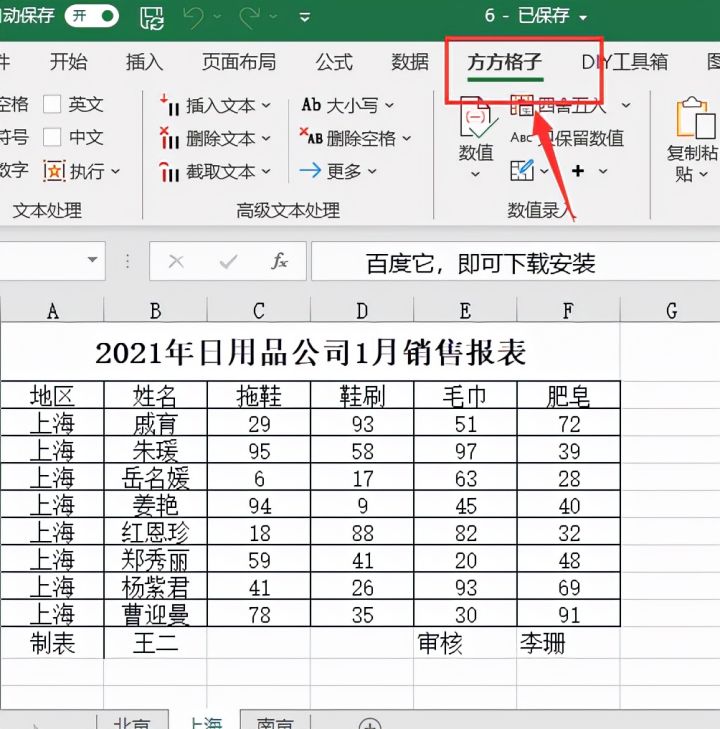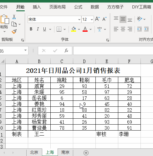 1.打开演示文件,要求快速完成多个工作表数据汇总