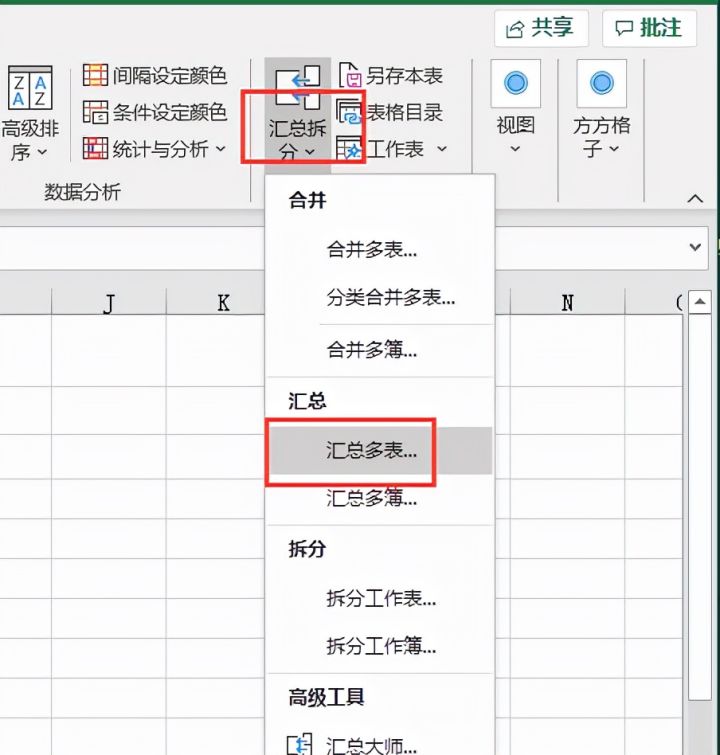 4.鼠标点击【汇总拆分】-【汇总多表】