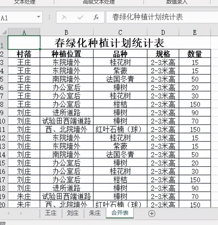 1.打开演示文件,如下图要求将多个表格合并到一起。