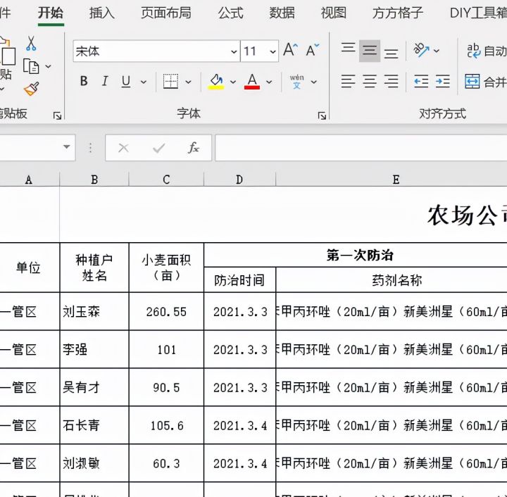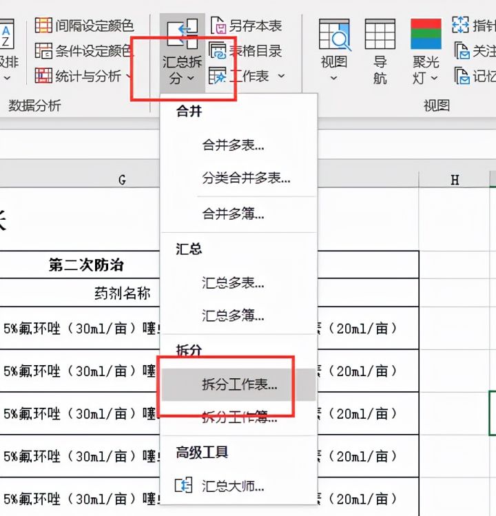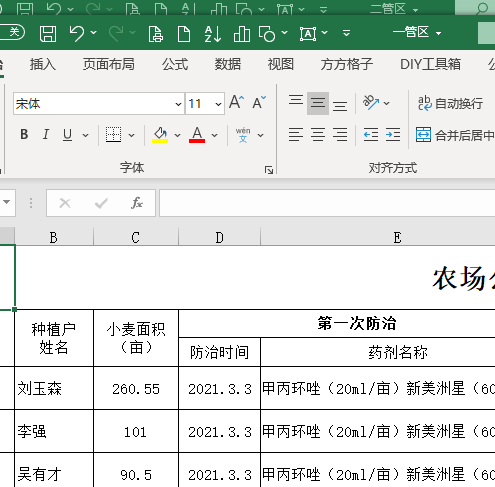 1.打开演示文件,要求将表格按照管区的不同拆分为多个。