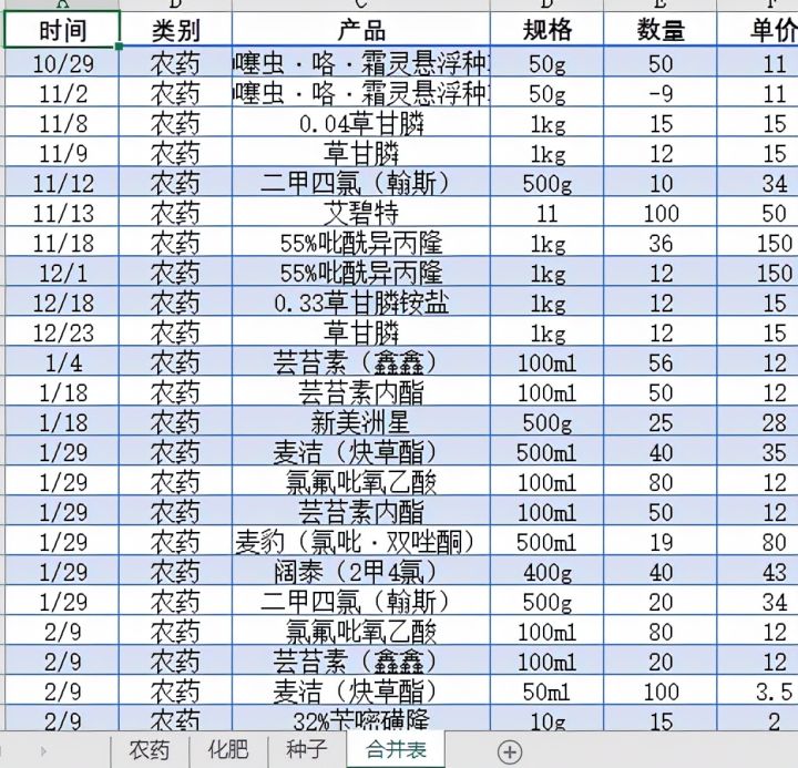 1.打开演示文件,要求将这几个格式相同的表格合并到一起。