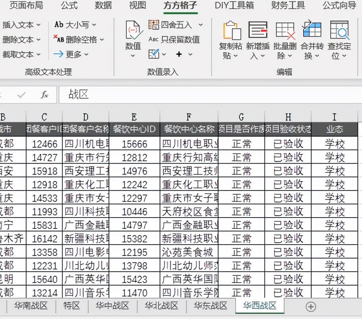 1.如下图表格文件,现在我们想要将表格按照战区的不同拆分开。