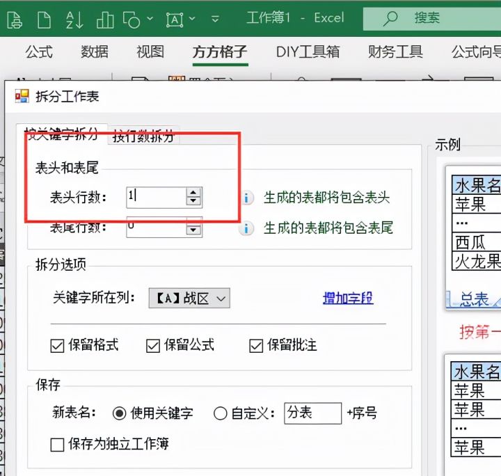 4.将表头行数设置为1