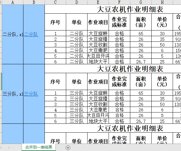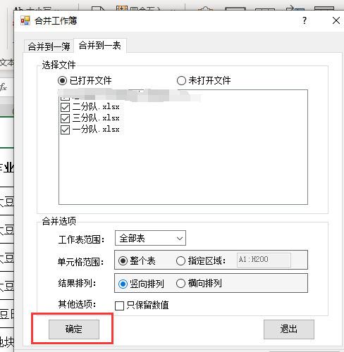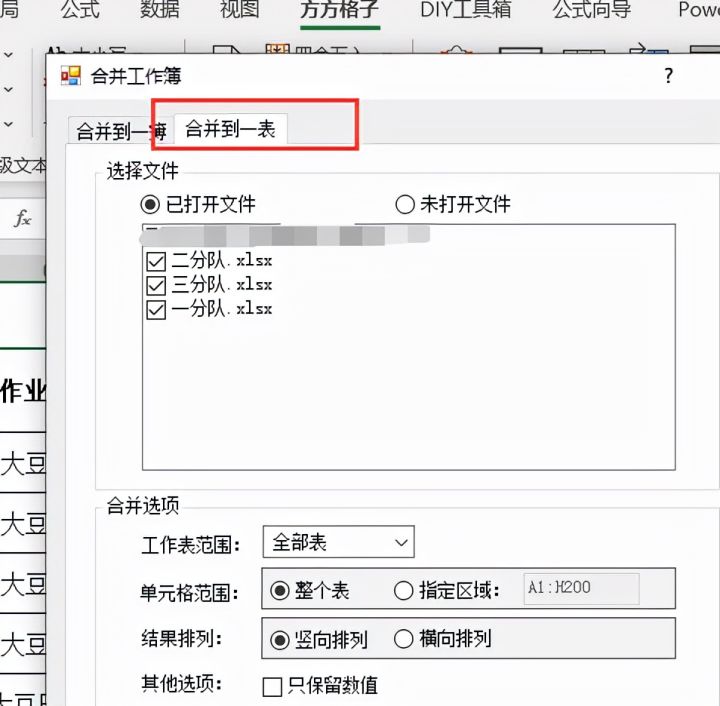 4.鼠标单击【合并到一表】