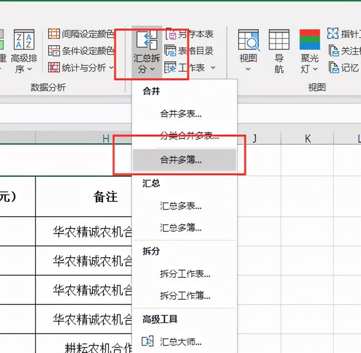 3.点击【汇总拆分】,选择【合并多簿】