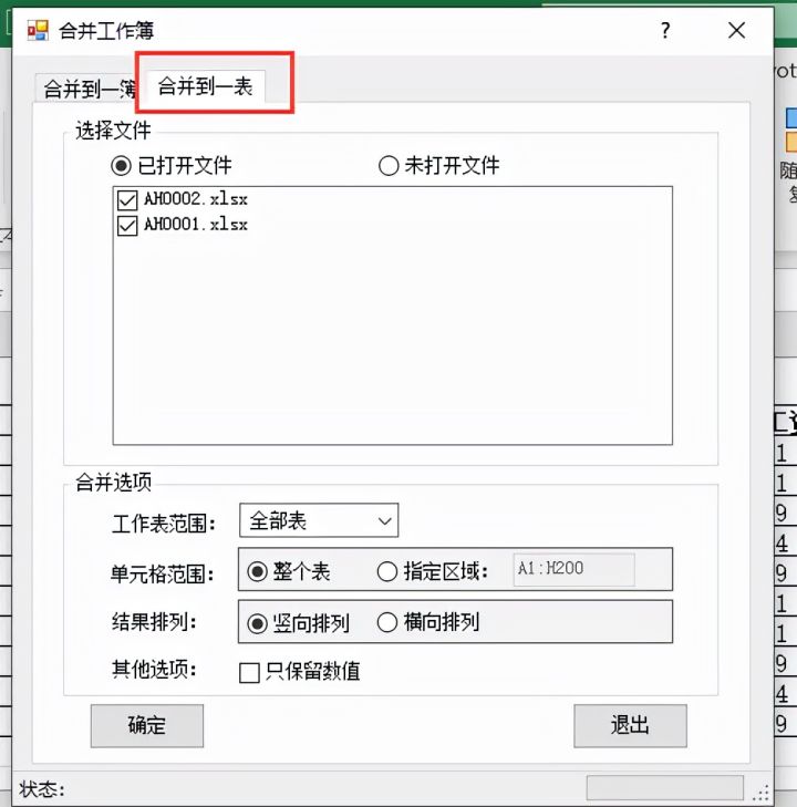 4.鼠标点击【合并到一表】