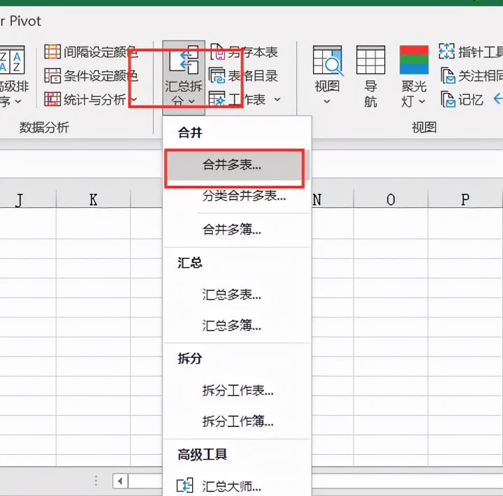 3.点击【汇总拆分】-【合并多表】