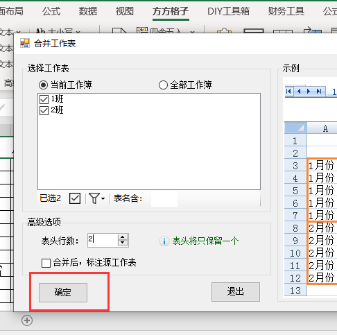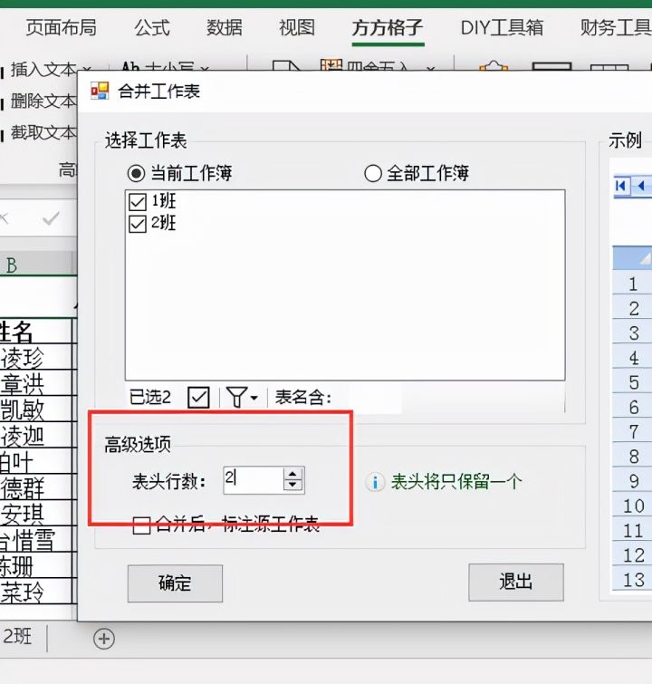 4.将【表头行数】设置为2