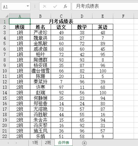 1.打开演示文件,如下图要求将两个表格合并到一起。