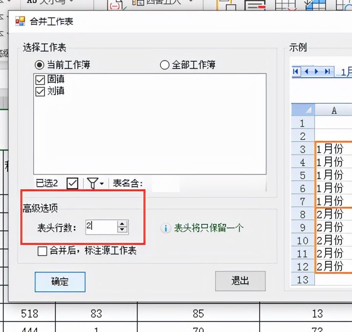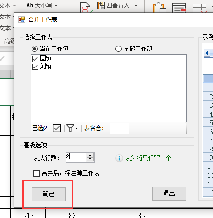 这篇博客介绍了如何在Excel中合并两个工作表。通过点击特定选项,选择【汇总拆分】-【合并多表】功能,然后勾选需要合并的工作表,并设置表头行数,最后确认操作,即可轻松将多个表格数据整合到一起。
