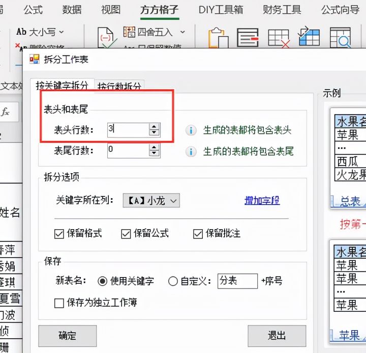 4.将【表头行数】设置为3