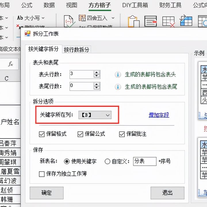 5.然后在拆分选项中设置为B列