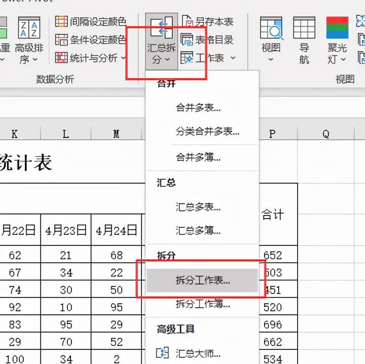 3.点击【汇总拆分】、【拆分工作表】