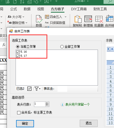 这篇博客介绍了如何在Excel中快速合并多个表格。通过点击特定选项,选择【合并多表】功能,然后指定表头行数,可以一次性将多个表格整合到一起,简化工作流程,提高效率。