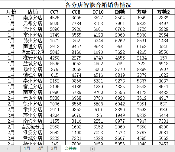 1.打开演示文件如下图要求将多个工作表数据合并到一起