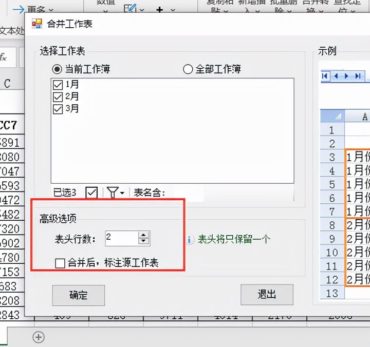 5.然后设置表头行数