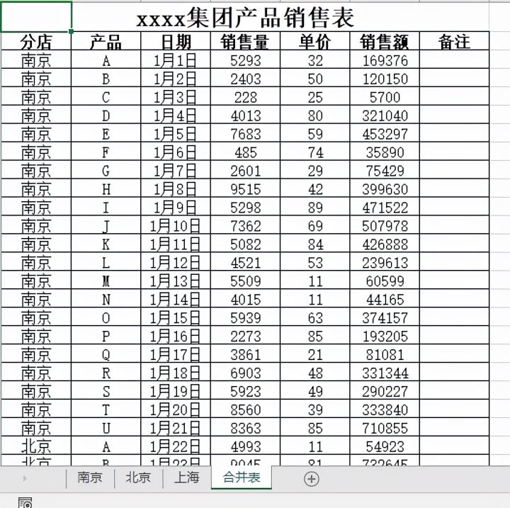 1.打开演示文件如下图有多个表格,现在我们想要将这两个表格汇总合并到一起。