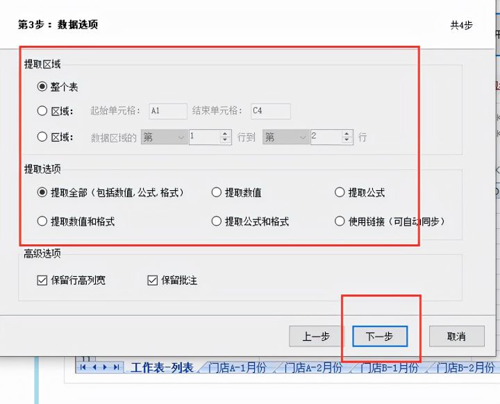 6.接着我们设置提取选项,点击【下一步】