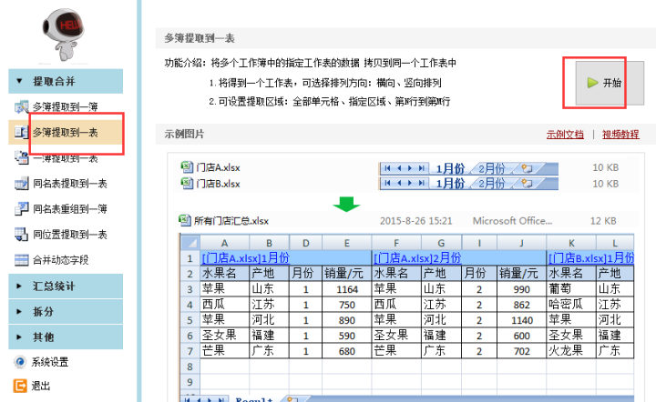 3.选择【多簿提取到一表】,然后选择【开始】