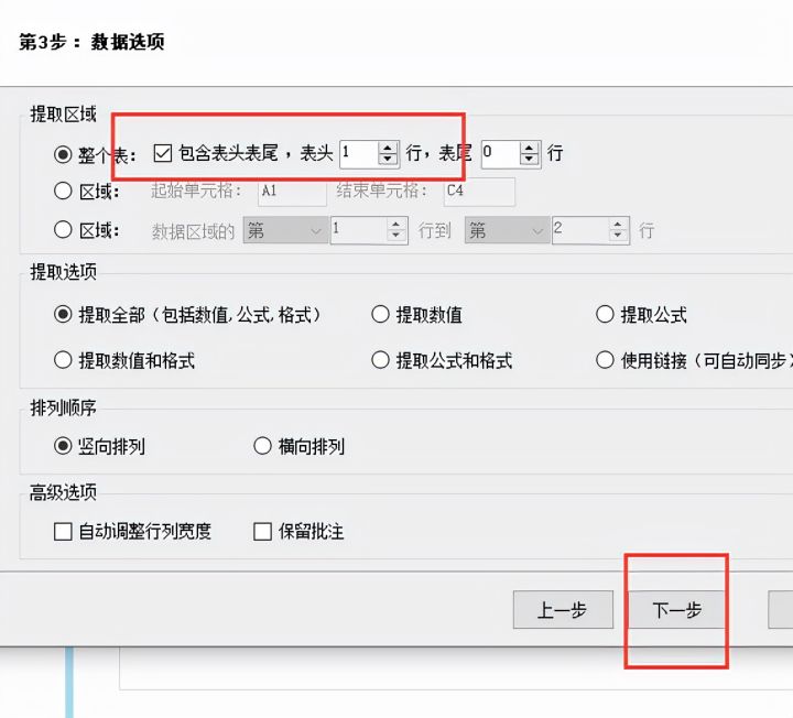 5.设置表头行数,然后点击【确定】