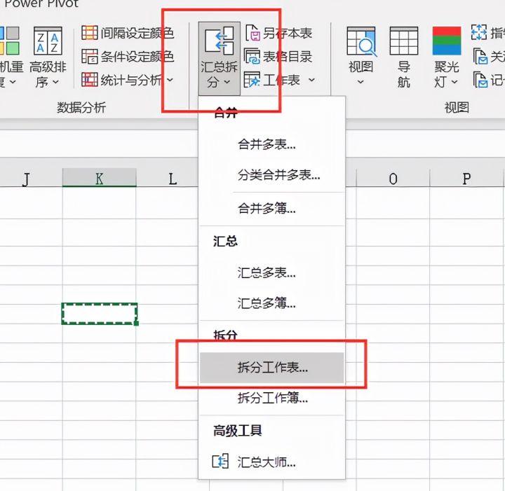 3.点击【汇总拆分】,选择【拆分工作表】