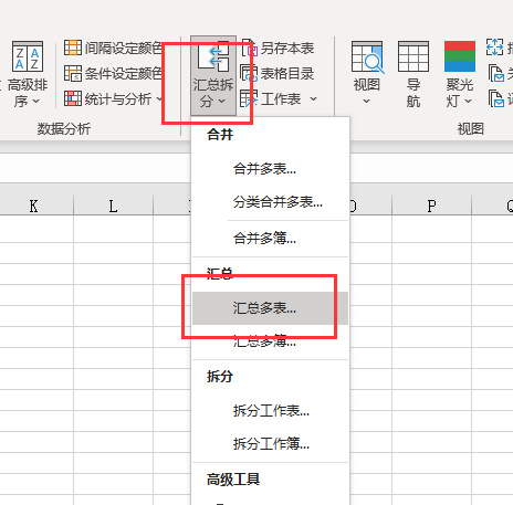 4.接着鼠标单击【汇总拆分】-【汇总多表】