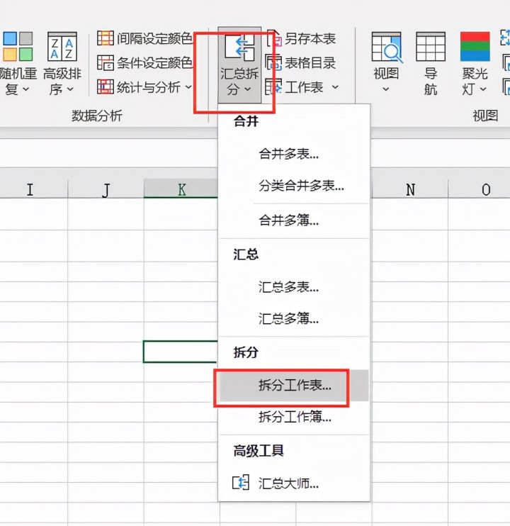 3.找到并点击【汇总拆分】-【拆分工作表】