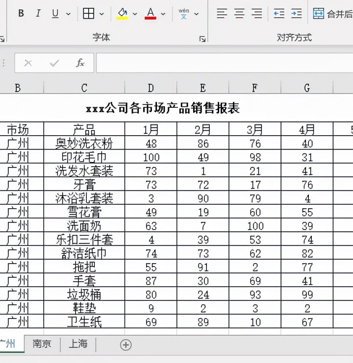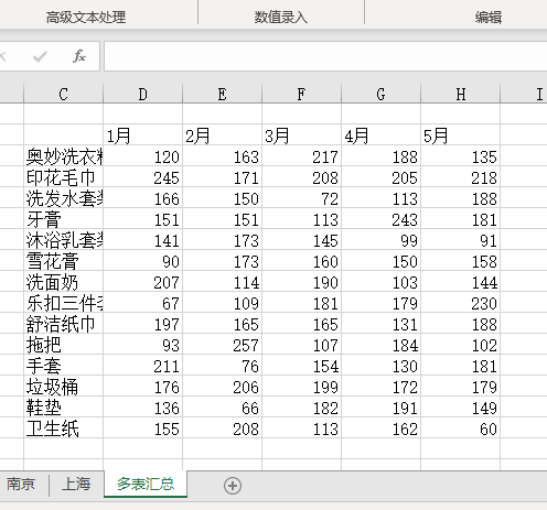 1.如下图工作簿中有多个工作表,现在我们想要快速汇总出各产品总销售量。