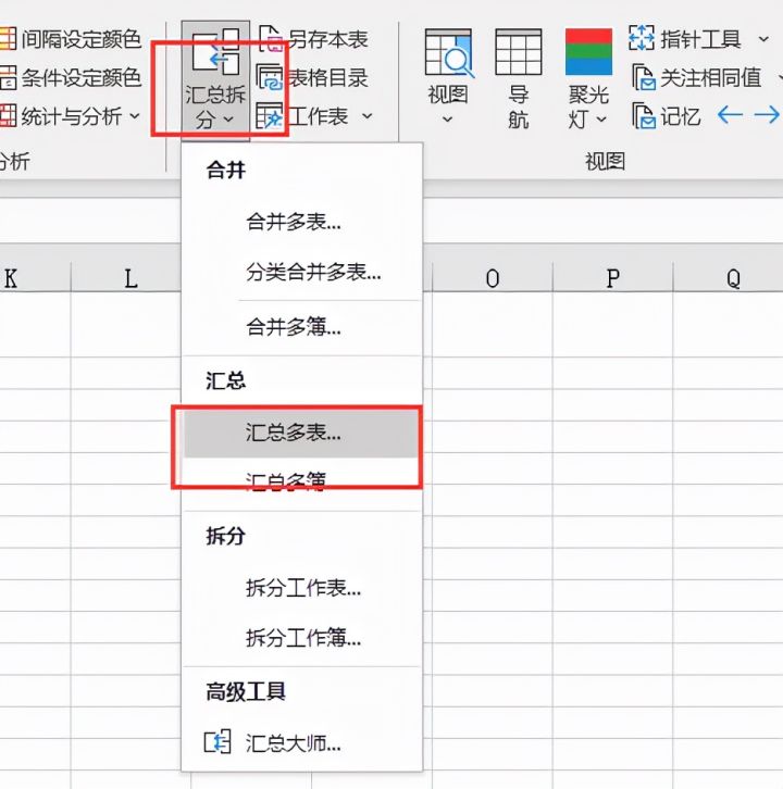 4.点击【汇总拆分】选择【汇总多表】