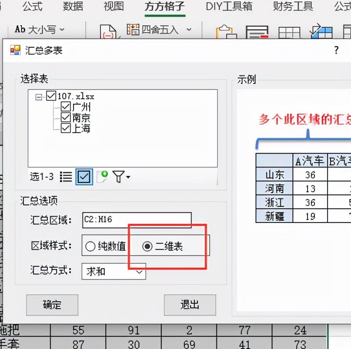 5.勾选【二维表】