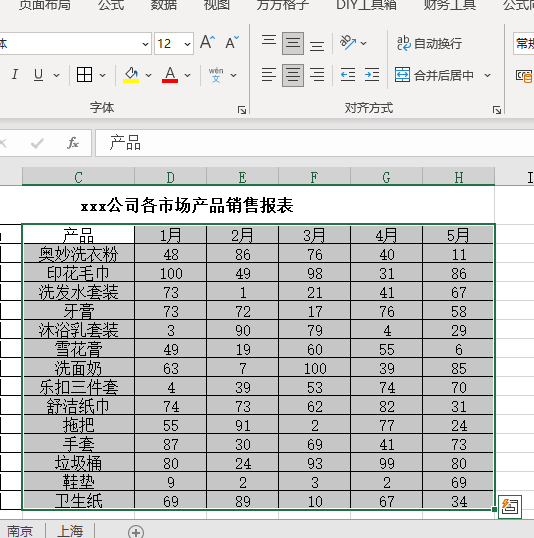 2.首先选中销售数据单元格