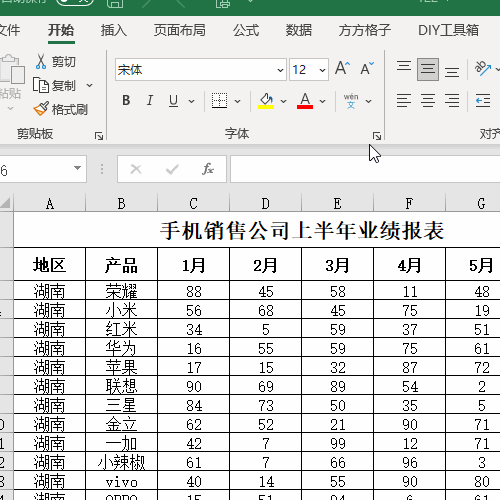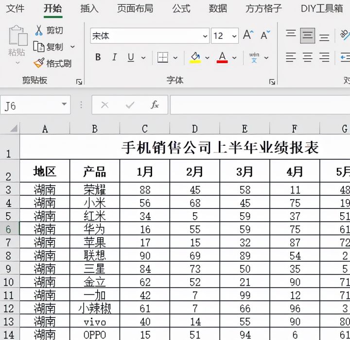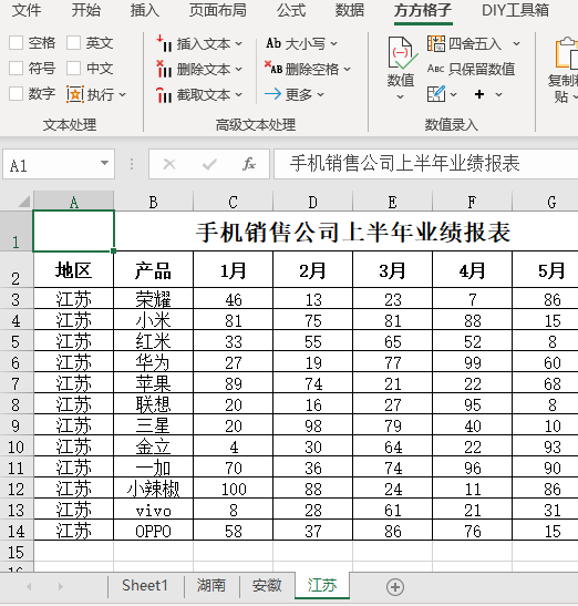 1.首先我们打开演示文件,要将表格按照地区快速拆分为多个表格。