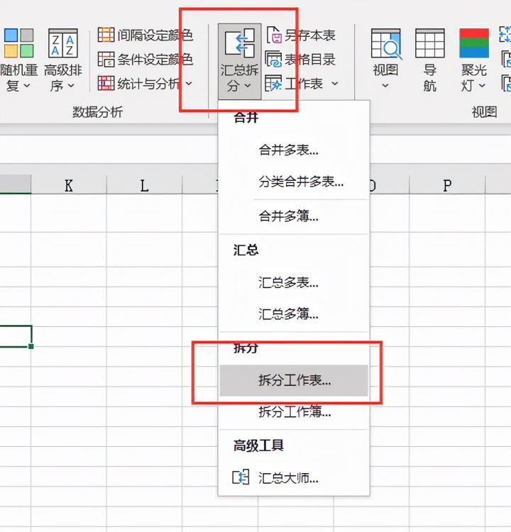 3.接着鼠标依次点击【汇总拆分】-【拆分工作表】