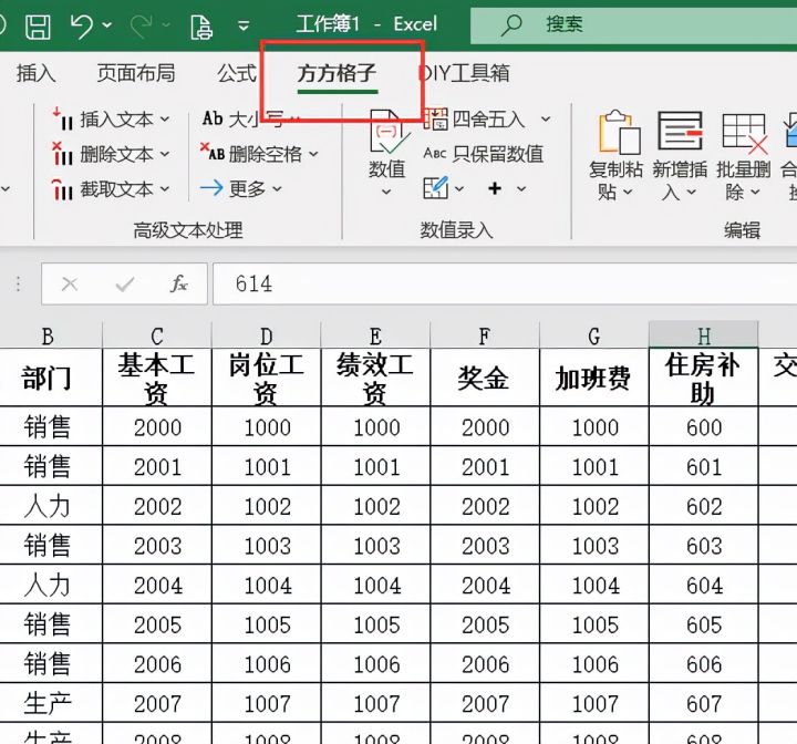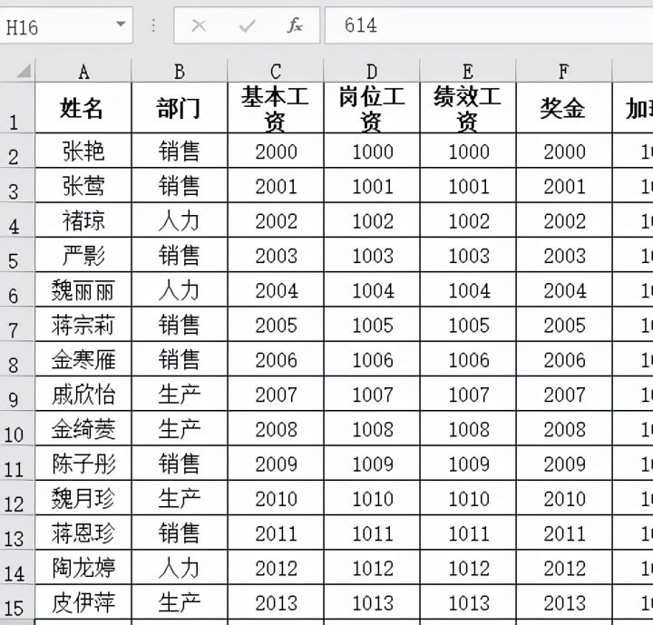 1.打开excel文件,如下图是某公司工资表,现在想要按照部门的不同分别拆分为多个独立工作簿。