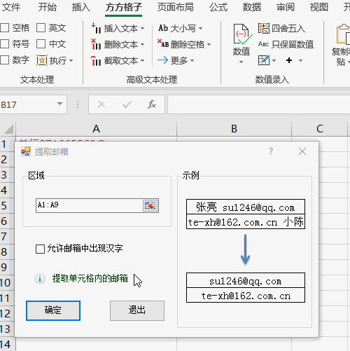 本文介绍了两种在Excel中提取邮箱地址的方法。对于所有版本的Excel,可以使用第三方插件方方格子,通过其提供的提取邮箱功能轻松完成。而对于高版本的Excel,可以利用快速填充功能,只需在两个单元格输入邮箱样例,然后按Ctrl+E快捷键即可批量填充邮箱。这两种方法都能帮助用户高效地从大量数据中准确提取出邮箱信息。