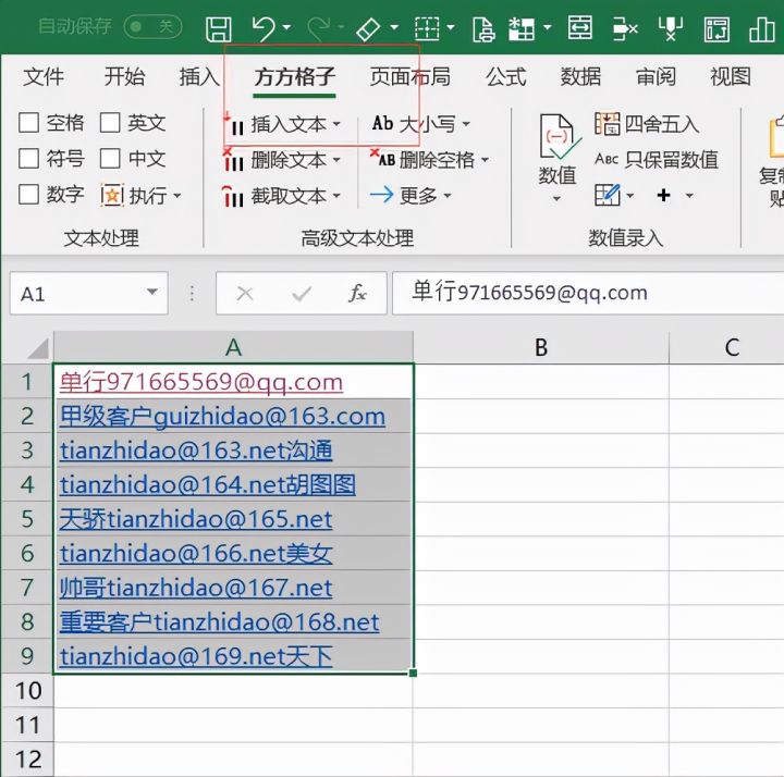 3.点击下图选项方方格子(这是一款Excel插件,具体的下载安装方法百度方方格子即可得知)