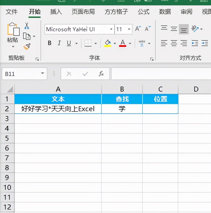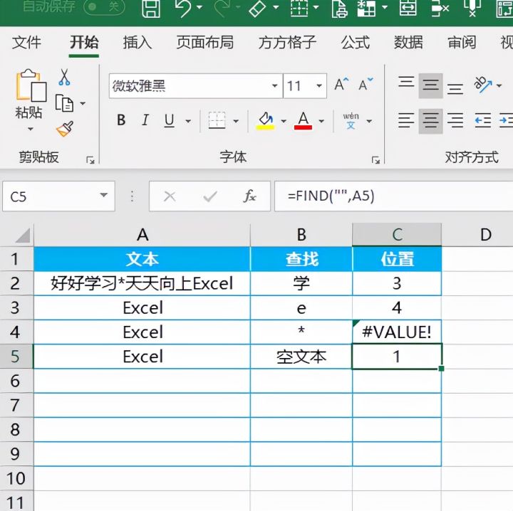 3、如果查找值为空,则返回字符串中首字符的位置。如下图
