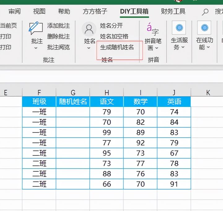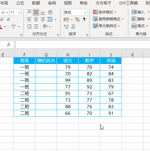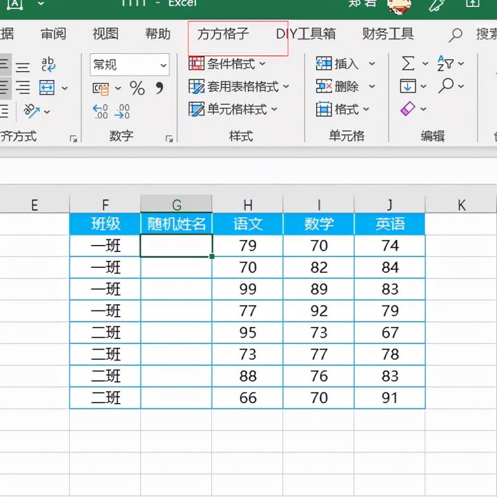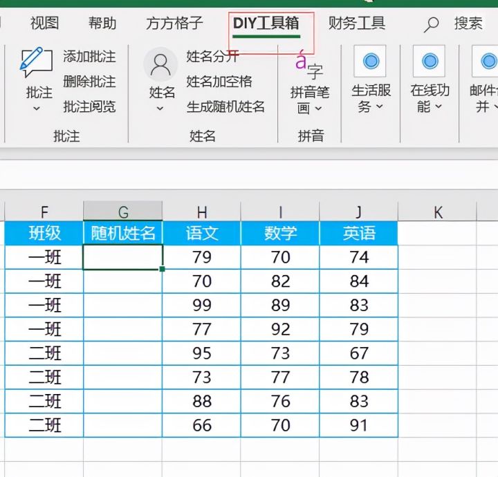 2.点击DIY工具箱(Excel插件方方格子的一个菜单,百度方方格子即可下载安装)
