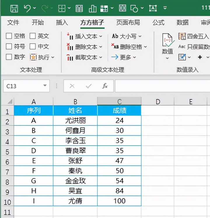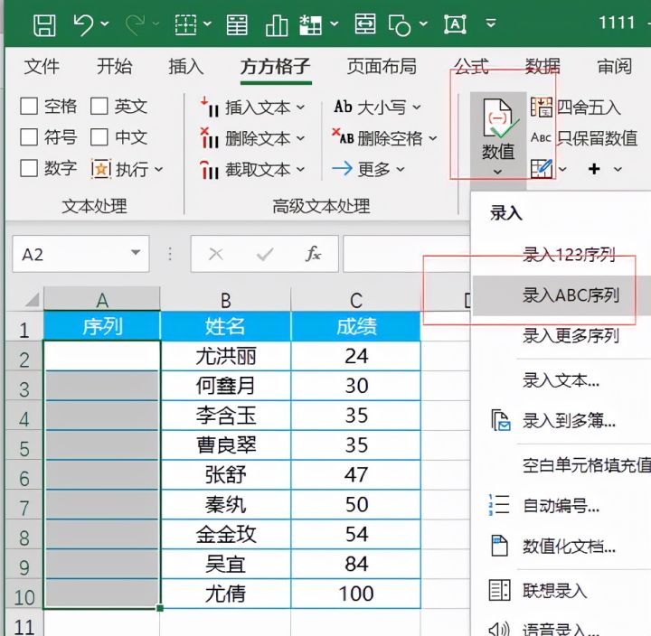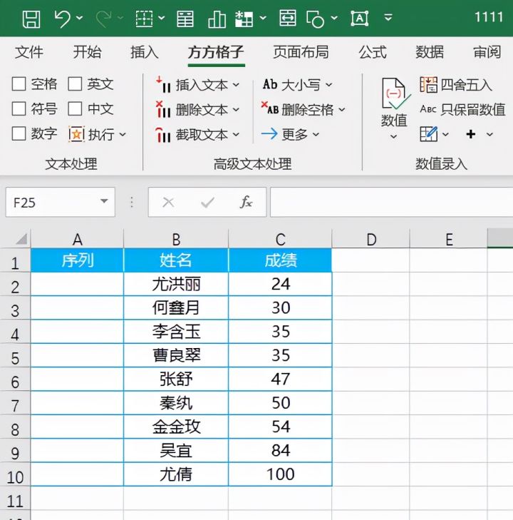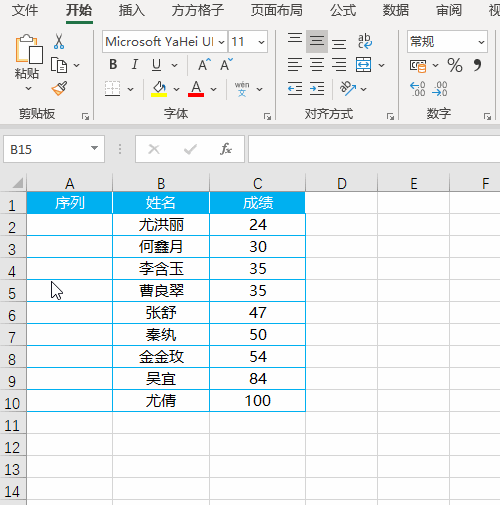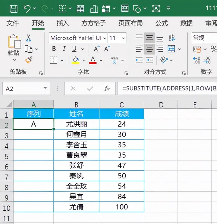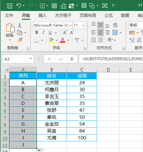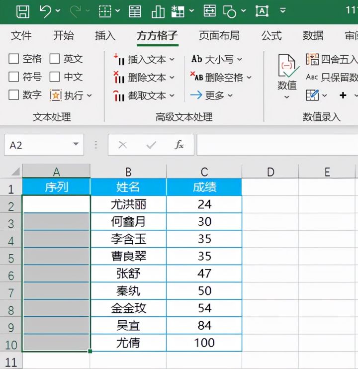 如下图,是某班级成绩表,现在我们想要快速在序列列输入大写字母序号