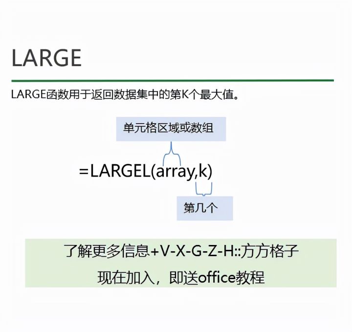 LARGE函数用于返回一组数据中的第K个最大值。它的语法结构是=LARGE(单元格区域或数组,K)