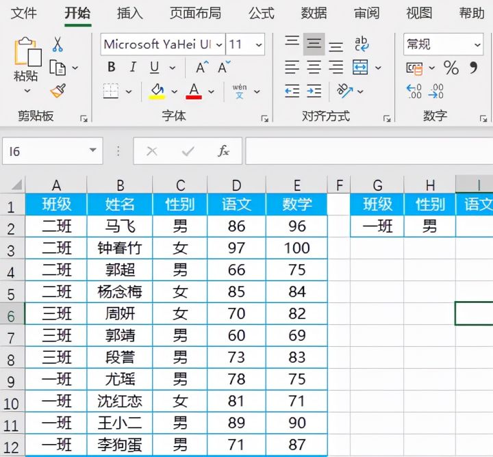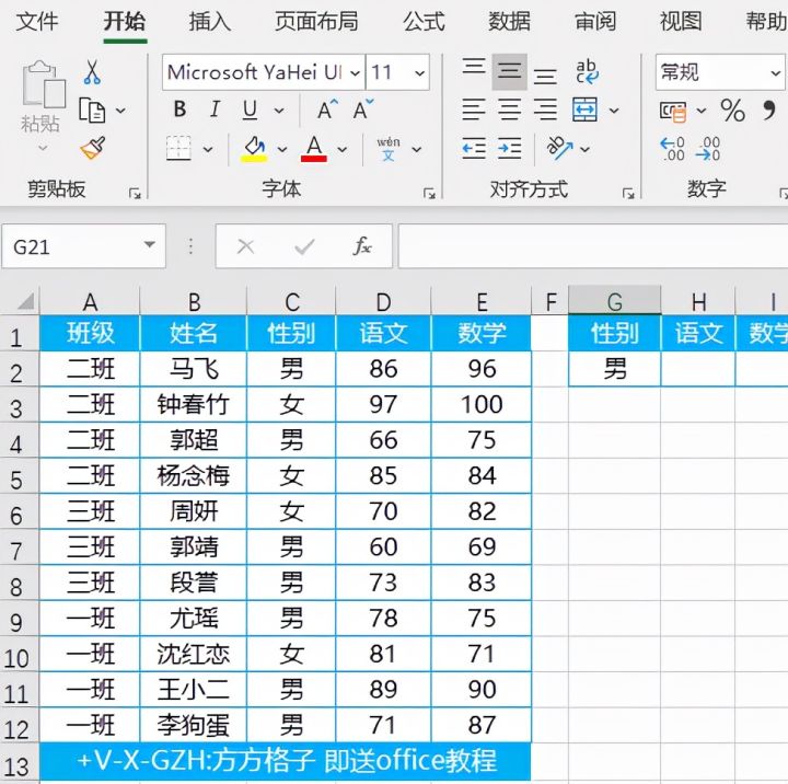 下面举一个实际例子演示一下它的用法,下图是某班级成绩表,我们想要查询出男生中语文、和数学的最高分。