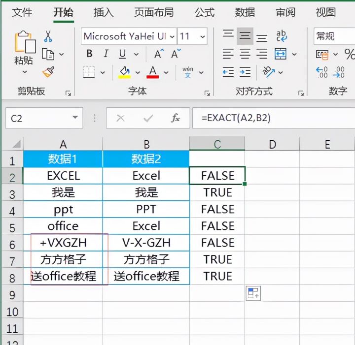 需要注意的是:EXACT的两个参数都是必选参数,参数可以是数值、文本、单元格引用或者函数公式。