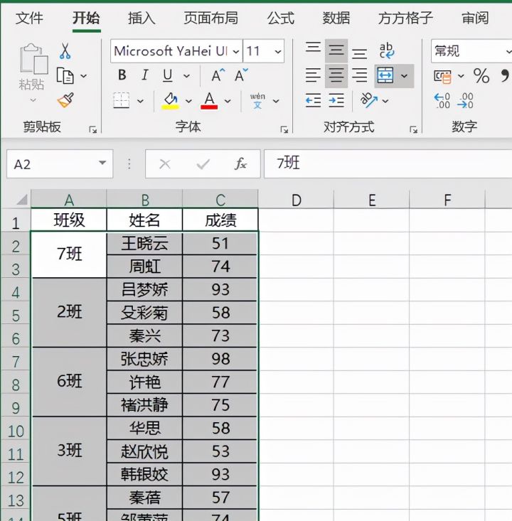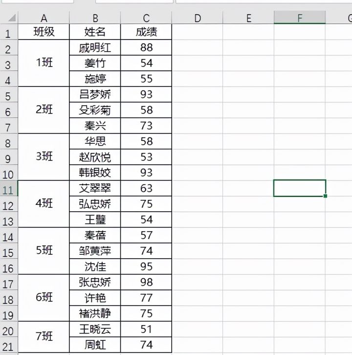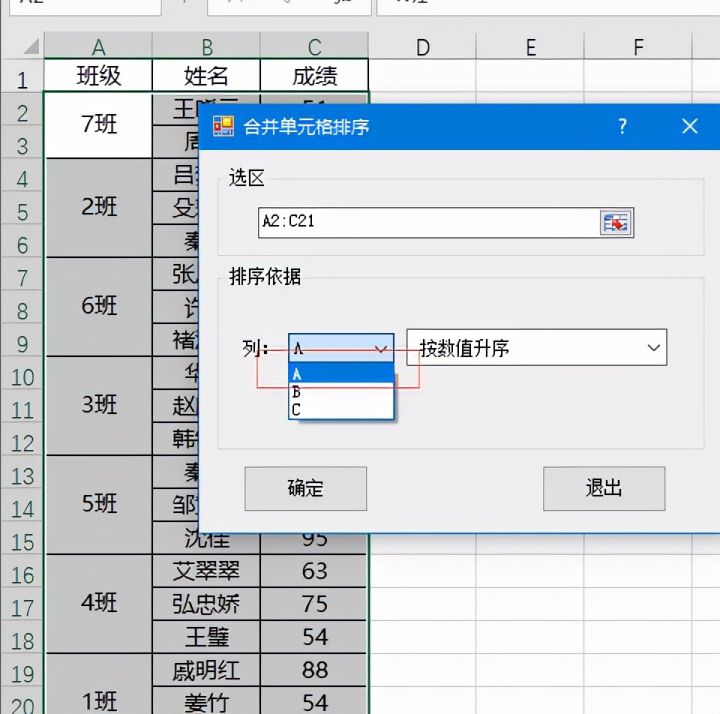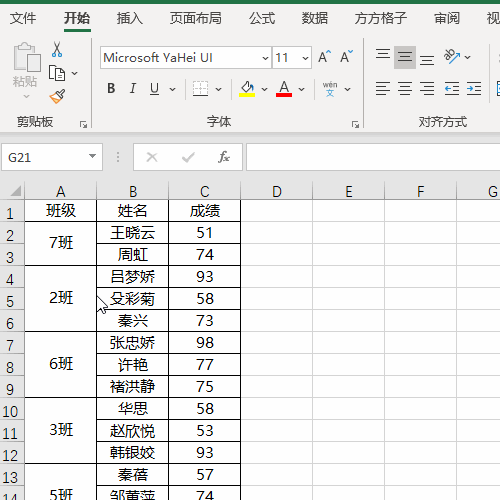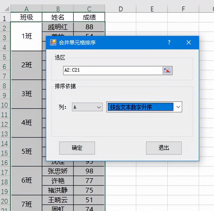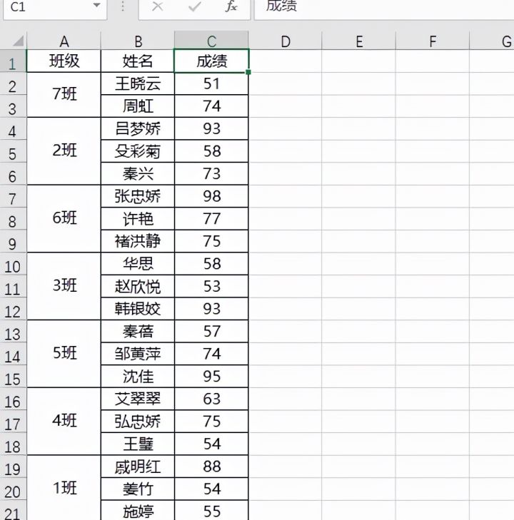 1.如下图,是某年级各班级前三名成绩表,现在想要将表格按照1班、2班、3班的顺序进行排列